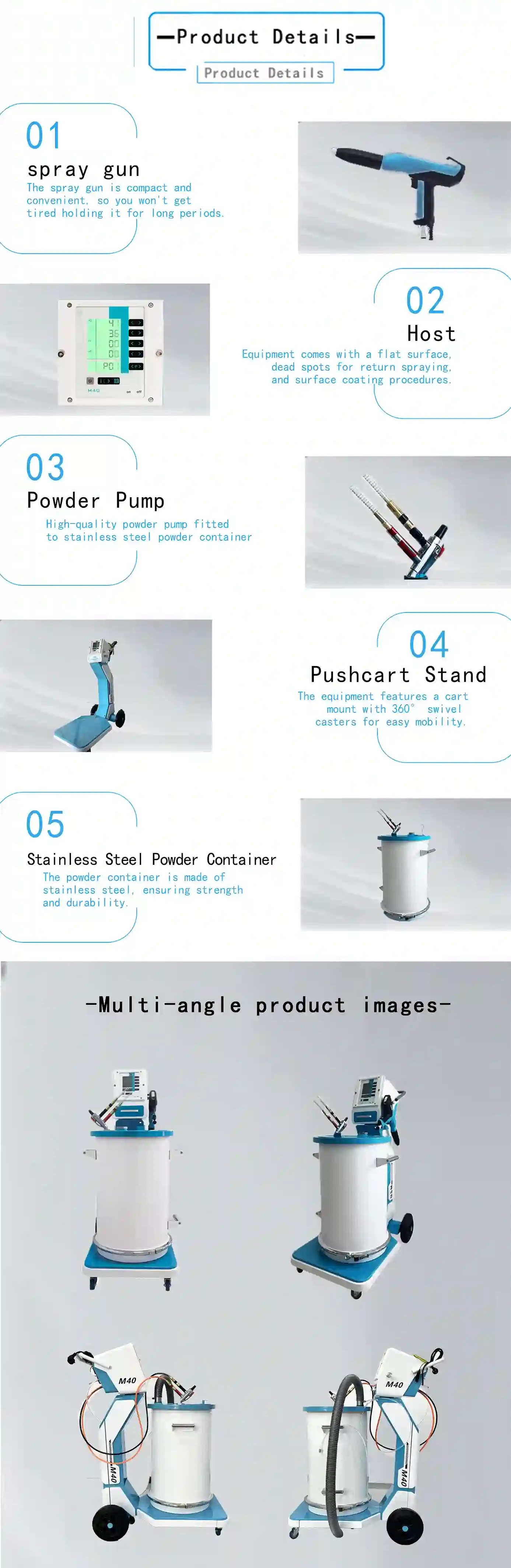 The M40 Auto Spray Gun utilizes advanced turbine drive technology, engineered for demanding industrial environments. It offers superior powder control and exceptional transfer efficiency, making it ideal for heavy coating applications and complex geometries, ensuring reliable, high-quality, and consistent finishes.